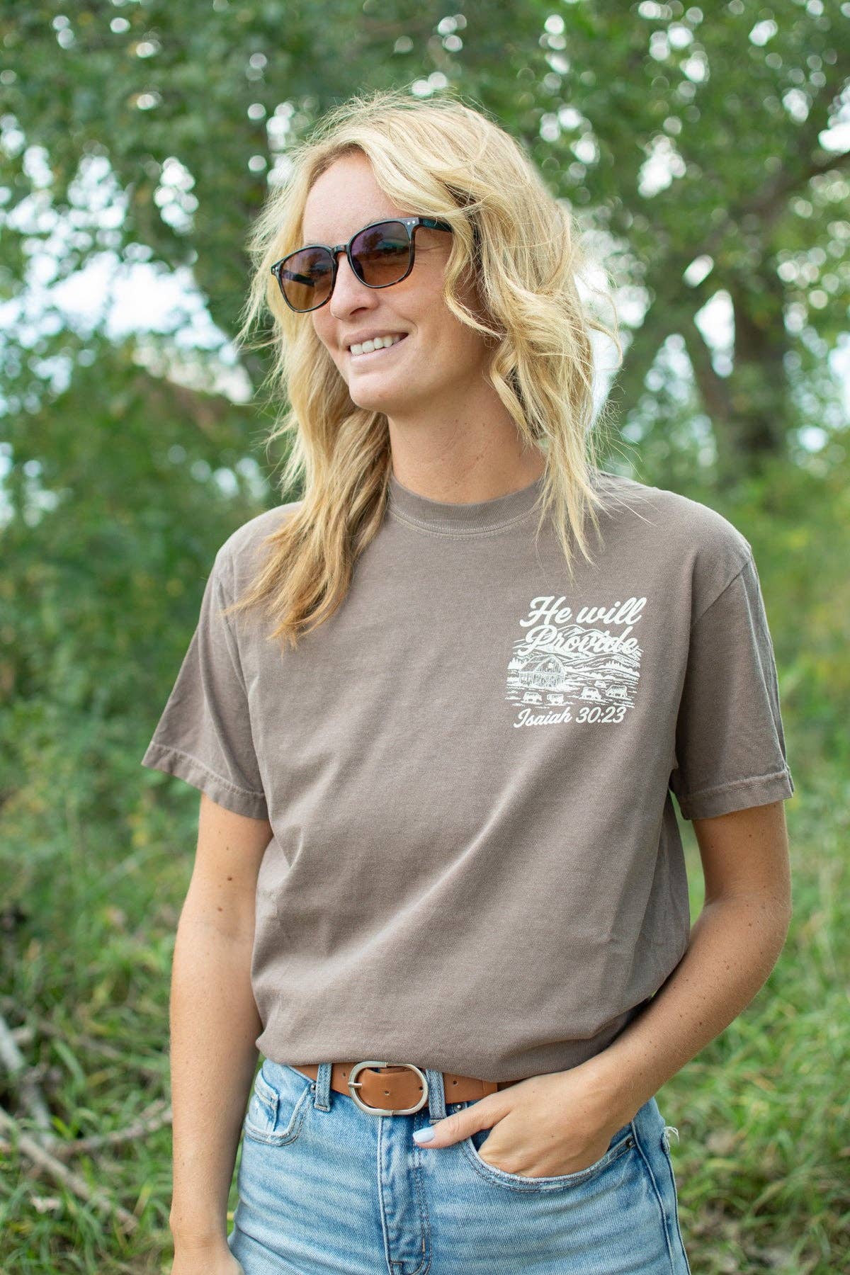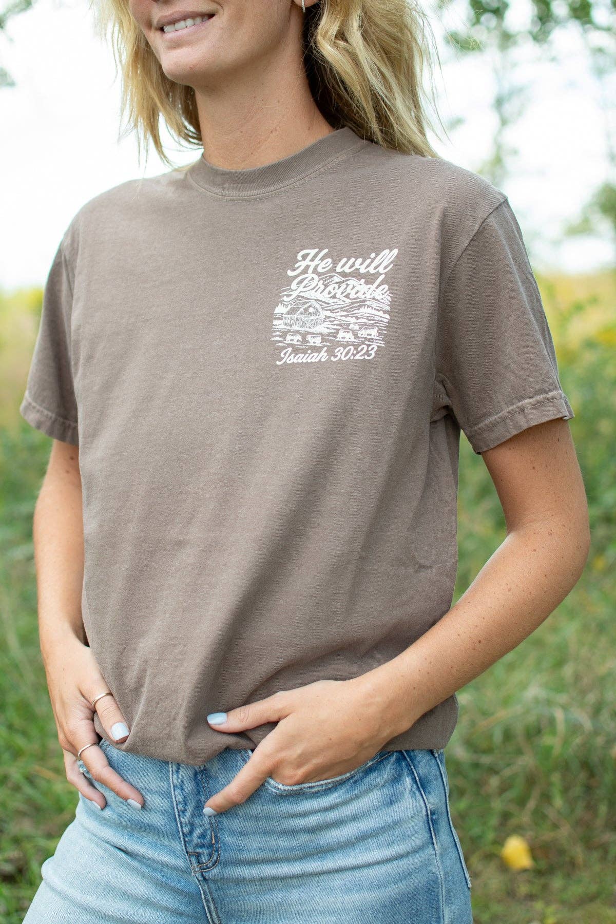 Carry a reminder of God’s provision wherever you go with this “He Will Provide” graphic tee. Featuring a timeless farm scene and Isaiah 30:23, this shirt beautifully blends faith with everyday rural life. Soft, relaxed, and easy to wear, it’s perfect for chores, errands, Sunday mornings, or evenings in the pasture.