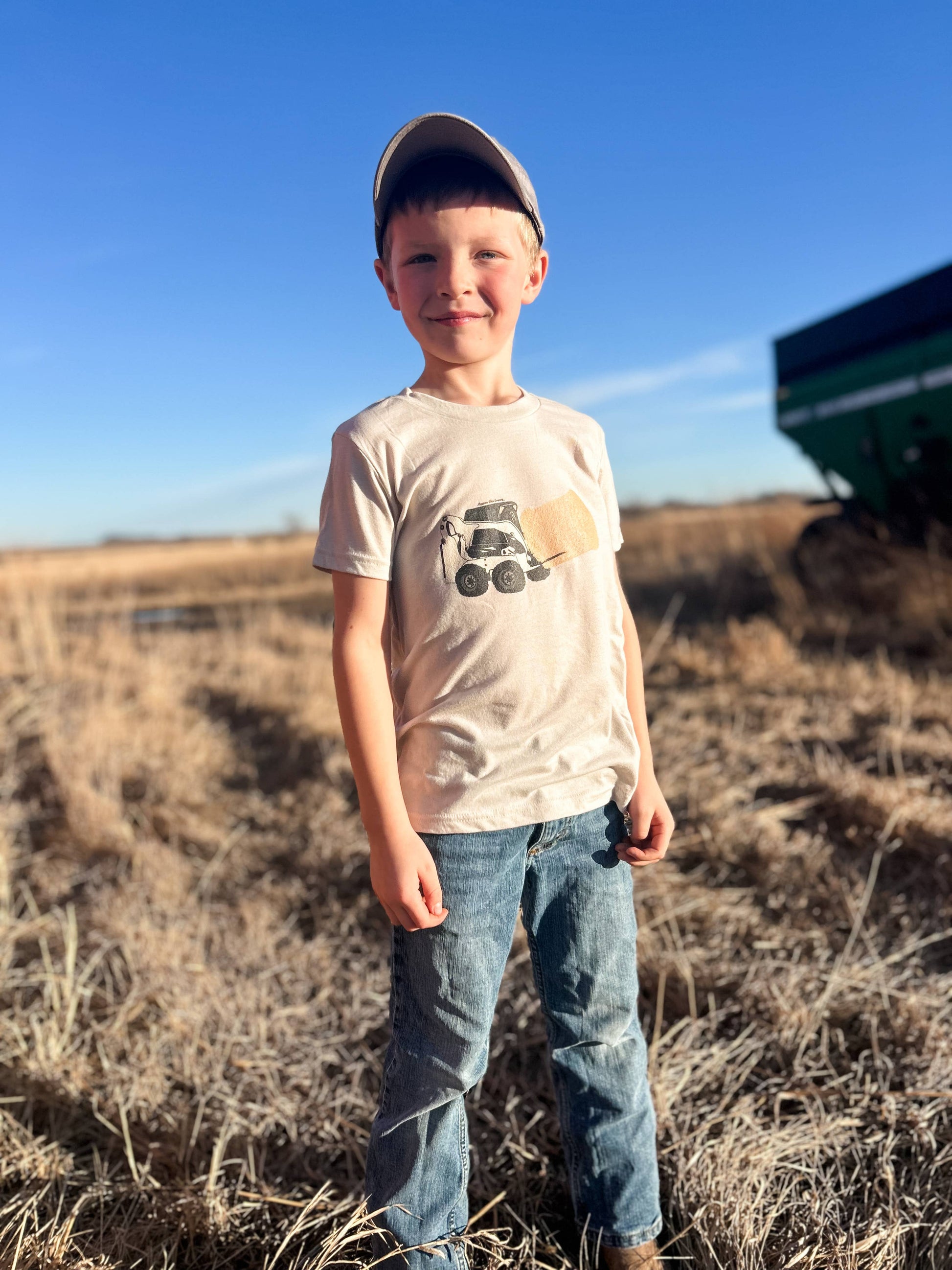 Let your little farmhand tackle the day in style with this Western Skid Loader Tee! Designed with a fun round-bale skid loader graphic, this heather dust tee is perfect for any tractor-lovin’ kid who spends their days tagging along to the yard, “helping” in the shop, or hauling straw in the play barn.